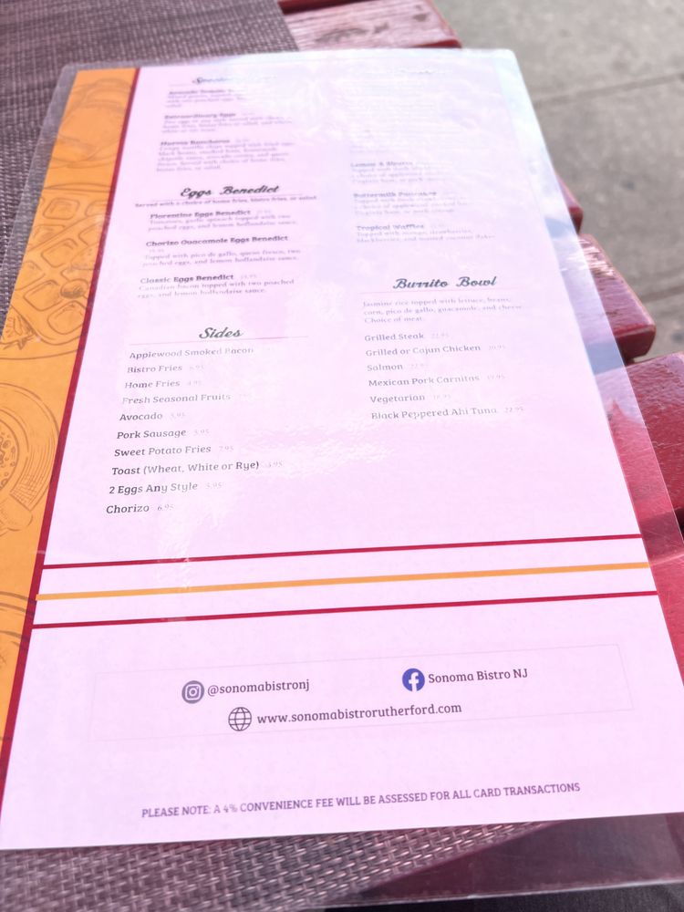 Sonoma Bistro, located in Rutherford, NJ, offers a delightful menu filled with American breakfast and brunch options. From beef empanadas to calamari fritti and chicken parm sandwiches, their dishes are flavorful and diverse. The restaurant provides a cozy and modern ambiance, although seating can feel a bit tight. Customers rave about the lemon ricotta pancakes, smoked salmon eggs Benedict, and Mexican omelette. The service is efficient, although staff can be busy during peak times. The desserts, like the apple crumb with sambuca and caramel, are described as out of this world, making them worth the splurge. Overall, Sonoma Bistro is a great spot for a delicious meal, whether it's for brunch, lunch, or dinner. Make sure to book a reservation in advance to secure your spot at this popular establishment.